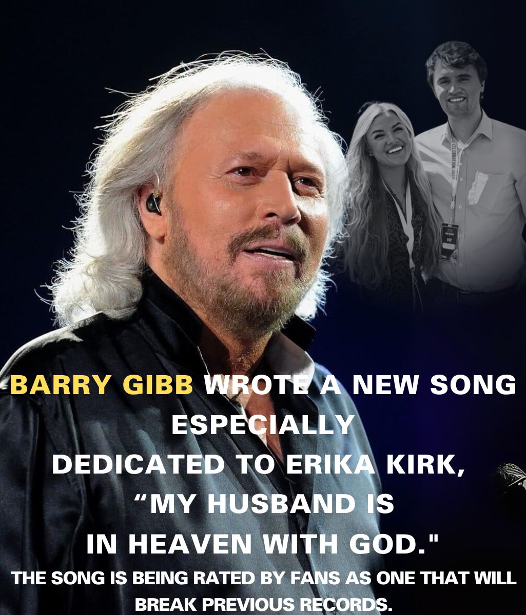 A MILLION-VIEW SONG: Just days after its release, Barry Gibb’s haunting new ballad has captured hearts around the world — inspired by Erika Kirk’s deeply moving words, “My Husband Is in Heaven With God.” What began as a quiet, intimate tribute has become a viral phenomenon, surpassing a million views within days and sparking emotional conversations across generations. But it’s the final verse — whispered more than sung — that has left fans breathless, wondering about the hidden truth behind Barry’s words. The song feels less like a performance and more like a prayer — a fragile dialogue between earth and heaven, written in the universal language of grief, faith, and love that endures beyond life itself. 💬 “This wasn’t written for the charts,” Barry shared softly in a rare interview. “It was written for anyone who’s ever lost someone — and still believes love doesn’t end.” Each lyric feels personal, like a quiet confession from a man who has loved deeply and lost profoundly. His trembling voice turns sorrow into serenity, pain into peace. For longtime fans, this isn’t just another song — it feels like Barry’s spiritual farewell, a final bridge between the living and the remembered. And when that last note fades into silence, one question lingers in every heart: was Barry singing to us — or to those he’s already joined beyond the light?