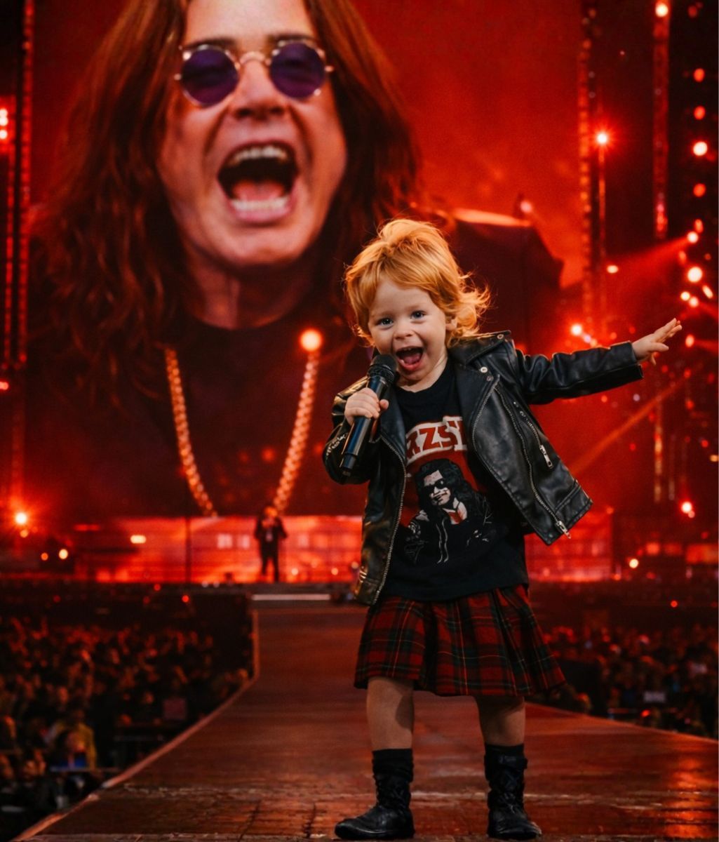 When Sidney, the young grandchild of Ozzy Osbourne, stepped softly into the light, the atmosphere shifted in an instant. There was no formal announcement. No elaborate introduction. No cue designed to amplify surprise. Just a small figure moving forward with natural ease — unguarded, unassuming.