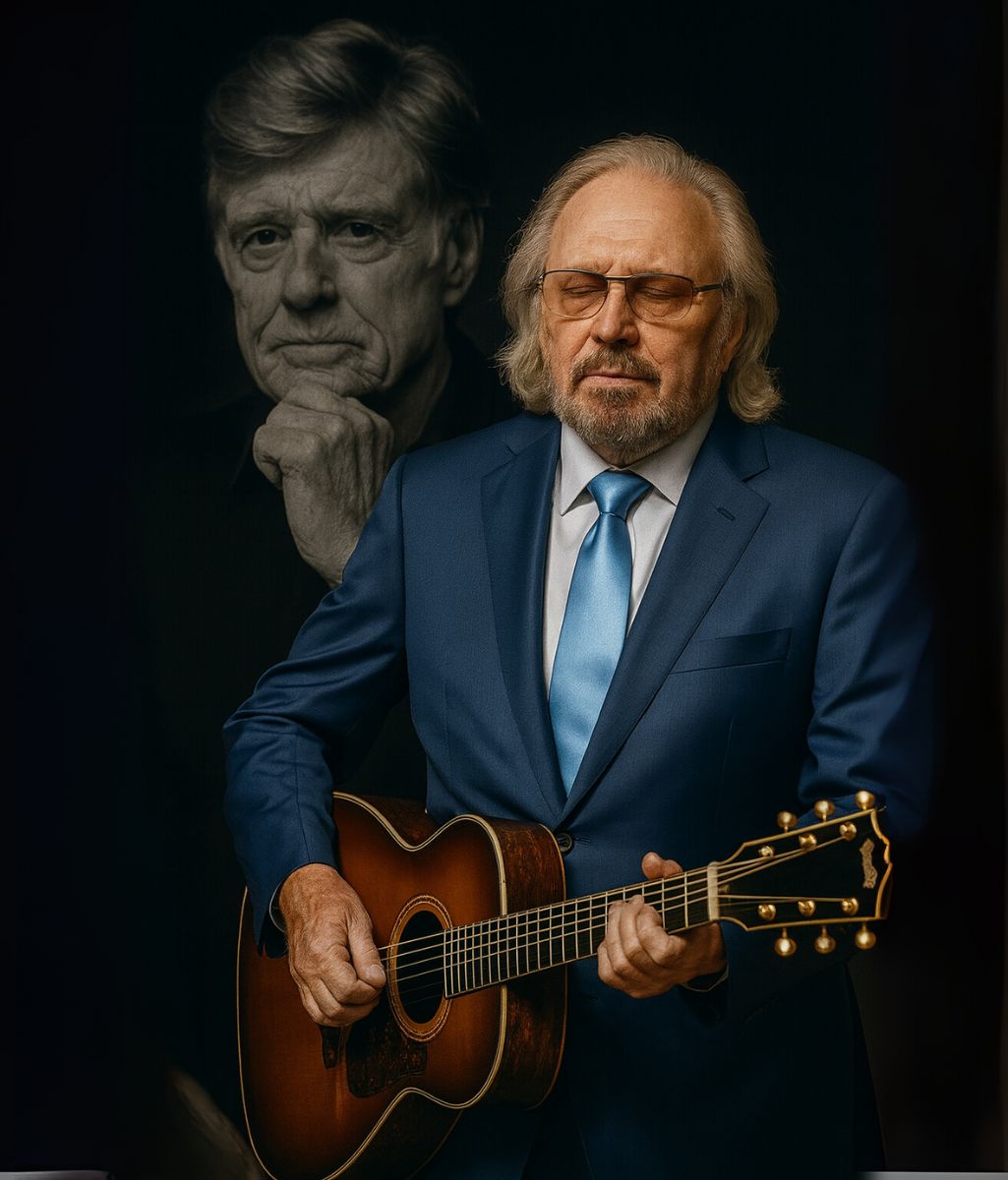 Then, under a single beam of light, Barry began to play. The first chords were hesitant, almost fragile, but soon they gave way to a melody heavy with ache and purpose. It was not one of the Bee Gees’ immortal hits, nor a chart-topping anthem. Instead, it was a song offered in tribute — not to another musician, but to a storyteller of a different kind: Robert Redford, the legendary actor and director whose name has become synonymous with American cinema.