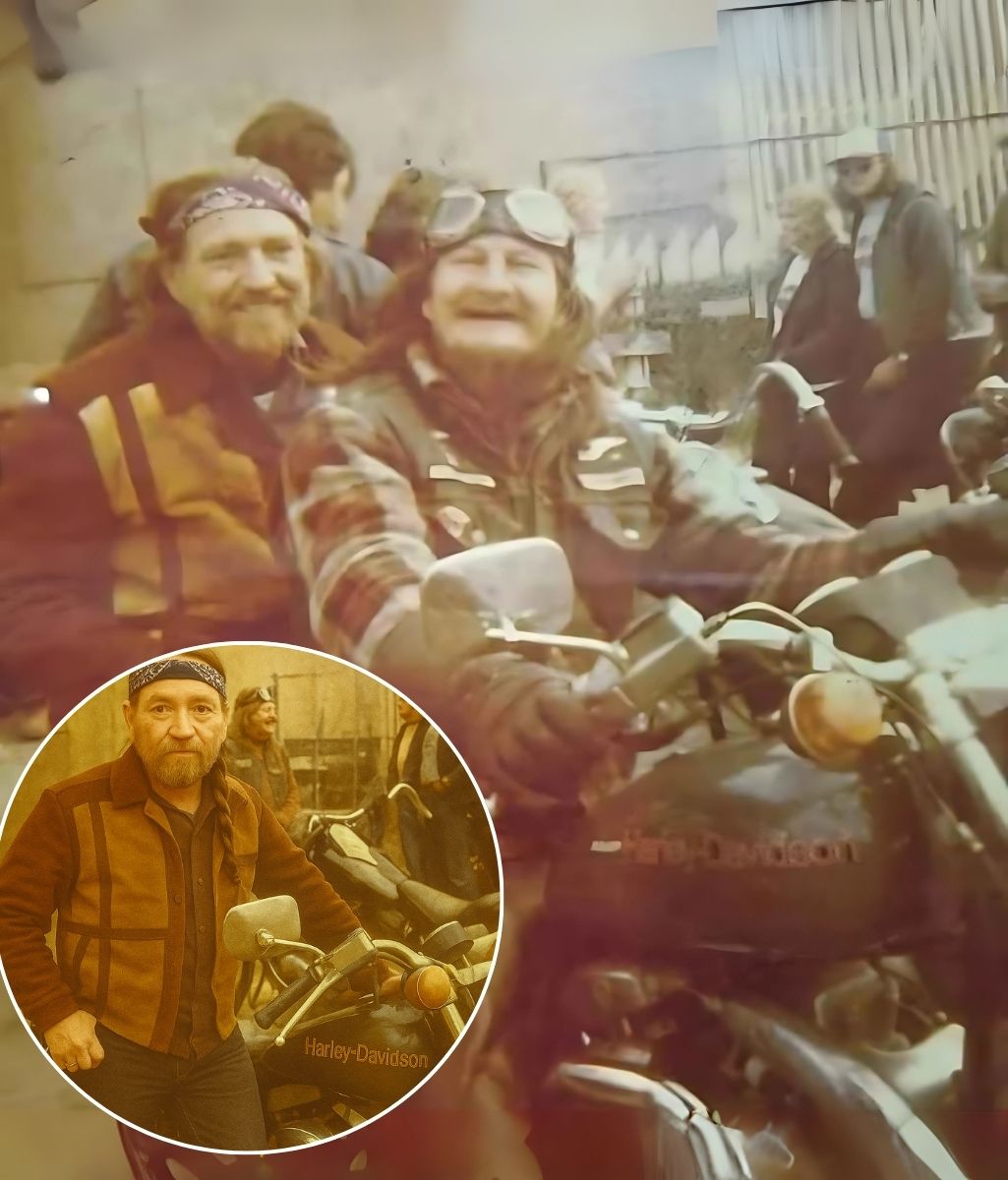 There are some sights that etch themselves into legend the moment they happen. On a sun-burned stretch of highway in California, the thunder of motorcycles grew louder until it shook the very air. At the front of the pack rode an Oakland Hells Angel named Boomer, his bike a blur of chrome and steel, every rev of the engine a declaration of rebellion. But what turned the scene from spectacle into history was the man riding behind him: Willie Nelson, his trademark bandana flapping in the wind, a guitar slung across his back like a soldier’s weapon, grinning as though the open road had become his stage.