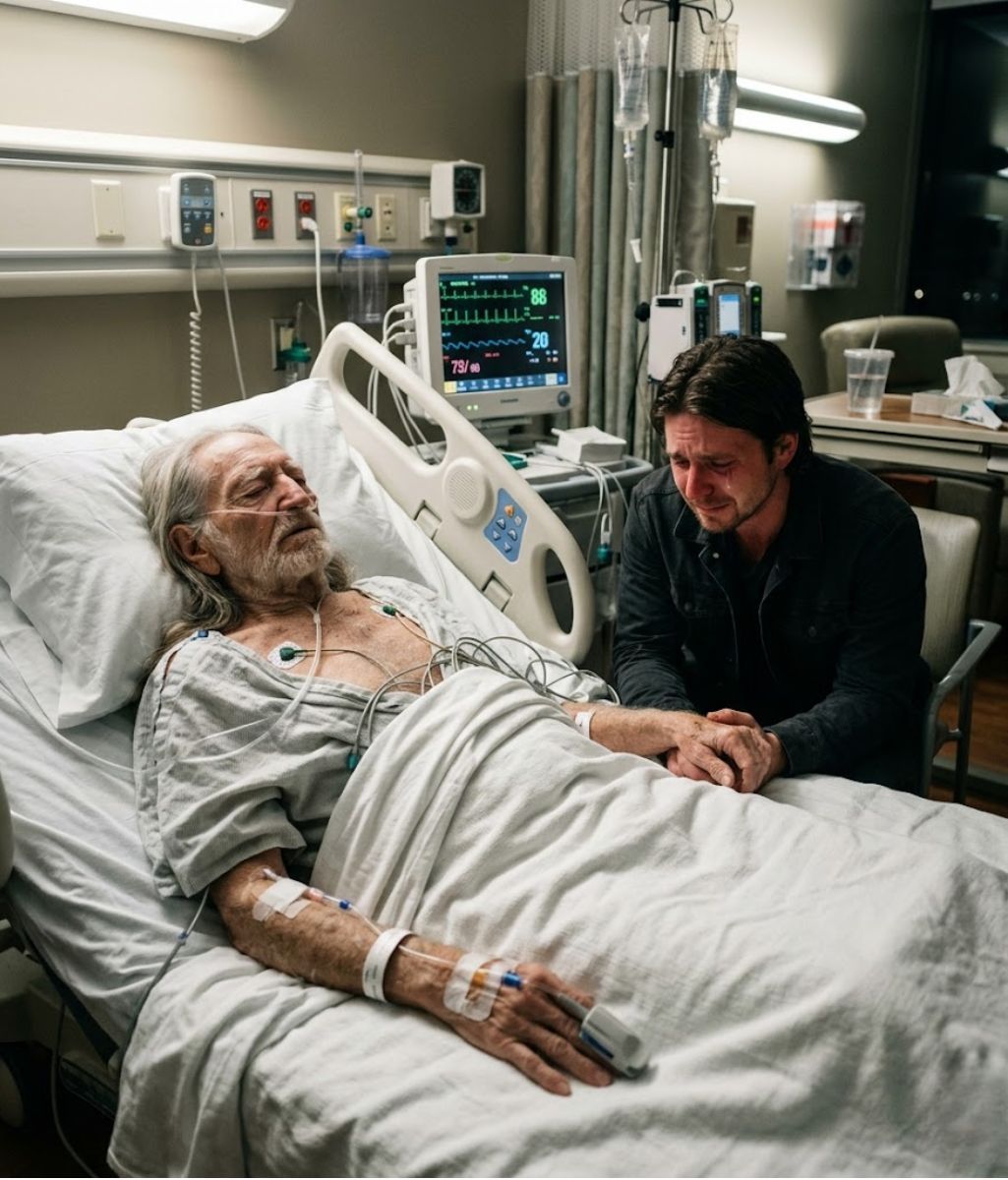 In a deeply emotional moment that quickly spread across the music world, Lukas Nelson stood before a quiet audience with tears in his eyes to share a difficult update about his father, Willie Nelson.