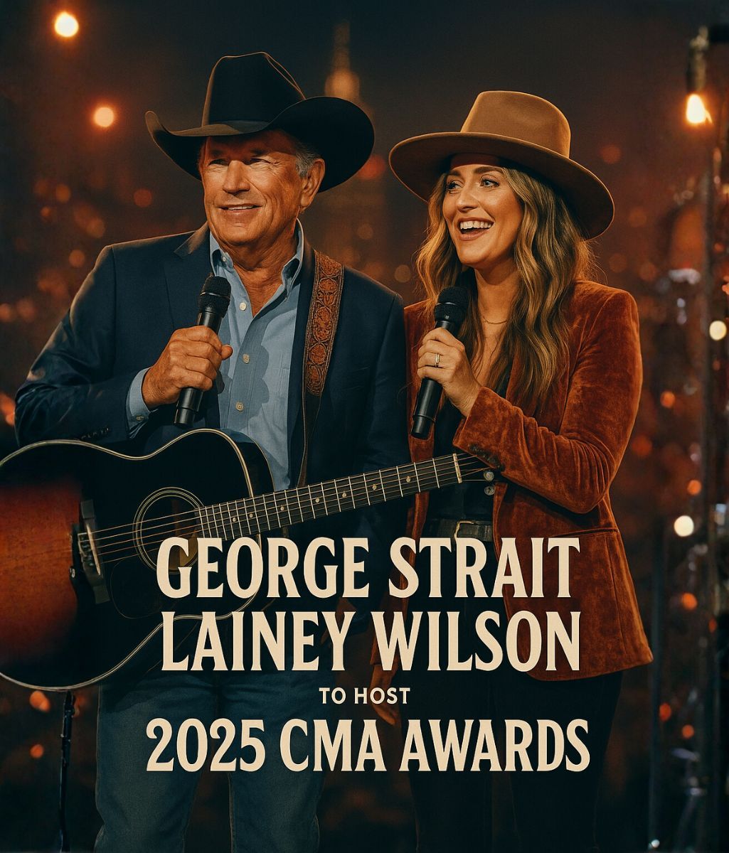 COUNTRY ROYALTY TAKES THE STAGE — GEORGE STRAIT AND LAINEY WILSON TO HOST THE 2025 CMA AWARDS TOGETHER! Nashville is already buzzing with excitement as two generations of country greatness prepare to share one stage. For the first time ever, George Strait — The King of Country — will co-host the CMA Awards alongside rising superstar Lainey Wilson, marking a historic blend of tradition and new fire. Producers promise an “unforgettable opening” and a night filled with once-in-a-lifetime moments, where classic country meets its future. Fans can expect stories, laughter, and maybe even a surprise duet or two. As one insider teased, “It’s not just another CMA night — it’s country music’s past and present shaking hands under the Nashville lights.”