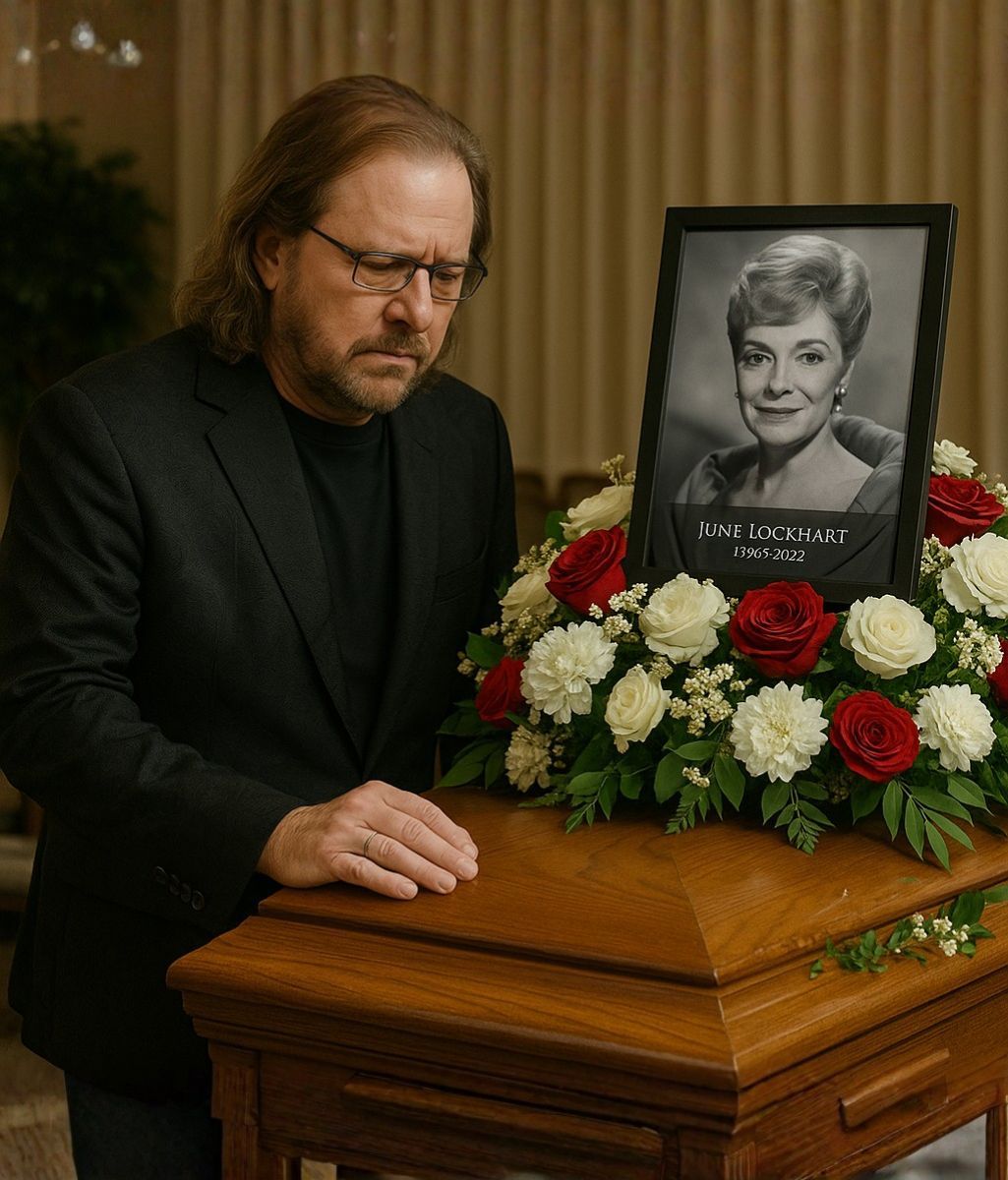 This afternoon in Beverly Hills, California, a moment of quiet grace unfolded that those in attendance will never forget. At the private memorial for beloved actress June Lockhart, the room fell into a reverent hush as Barry Gibb, the last surviving Bee Gee, stepped forward — not as a celebrity, but as a friend paying his final respects.