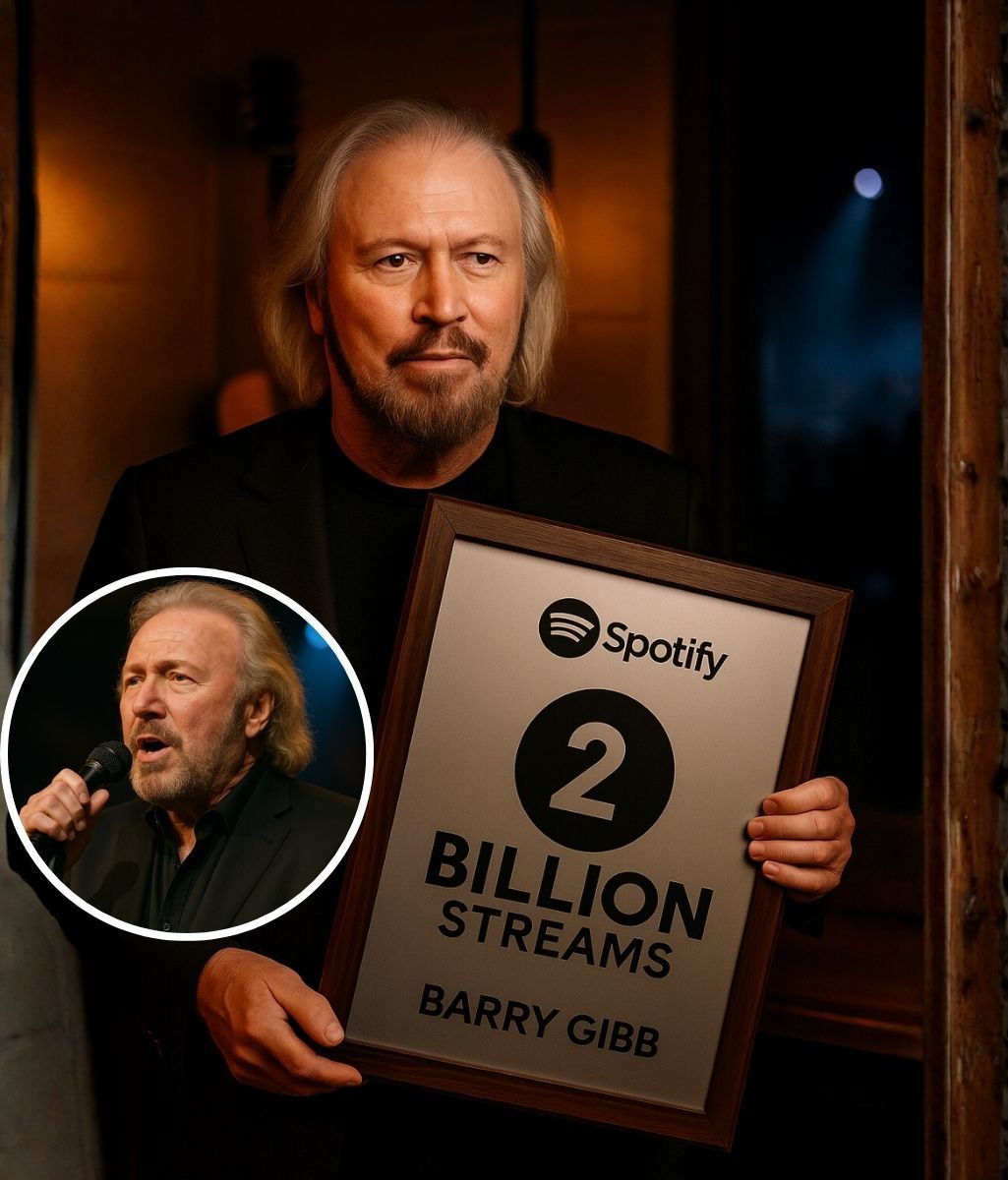 Backstage in London last night, under the warm shimmer of the stage lights, Barry Gibb stood with quiet grace — holding a plaque that gleamed with three simple words: “3 Billion Streams.” To most, it was another milestone in a career already carved in gold. But to Barry, it was something far more intimate — a reflection of love that never stopped echoing.