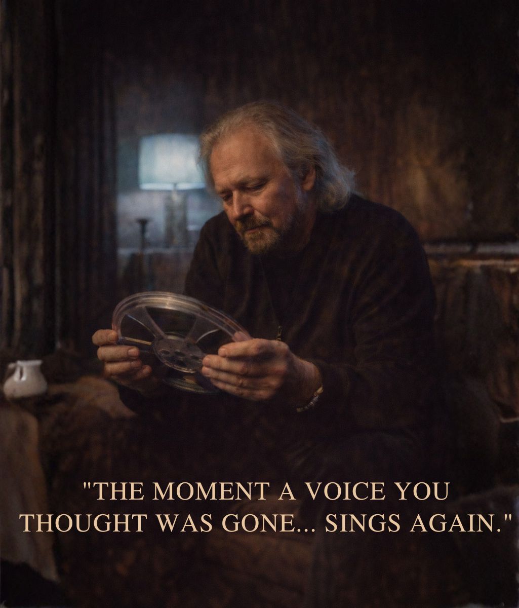 First came Maurice Gibb’s harmony — gentle, steady, unmistakable. The kind of voice that doesn’t announce itself, but immediately makes everything feel balanced. Then, through the soft crackle of tape, Robin Gibb’s vibrato rose — trembling, emotional, heartbreakingly alive. The room didn’t feel empty anymore. It felt occupied. Time collapsed into a single breath.