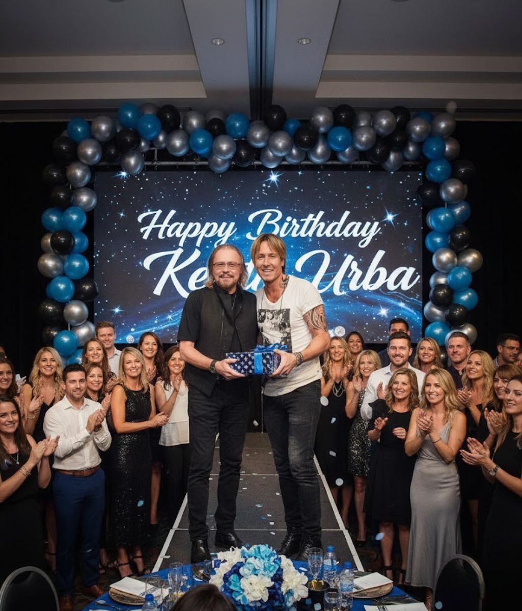 HEARTWARMING SURPRISE: Barry Gibb’s Emotional Gift Leaves Keith Urban in Tears at His Birthday Celebration It was meant to be a night of laughter, music, and old friends — but it turned into something far more moving. During Keith Urban’s private birthday celebration in Nashville, guests were stunned when Barry Gibb, the legendary Bee Gee, quietly took the stage, holding a small wooden box wrapped in silver ribbon. Keith smiled, expecting a playful gesture. But when he opened it, his expression changed — eyes wide, lips trembling. Inside was a handcrafted guitar pick carved from Maurice Gibb’s favorite instrument, a gift Barry had kept for decades. “It’s time it played again,” Barry said softly. “Maurice would’ve wanted that.” For a long moment, the room fell silent — just two friends, generations apart, bound by the same language of music and heart. Keith, overcome with emotion, hugged Barry tightly as tears welled in his eyes. No cameras. No headlines. Just a moment of pure connection — proof that the greatest gifts aren’t bought or planned, but shared from one soul to another. And that night, music’s past and present met — in gratitude, friendship, and the quiet beauty of remembrance.