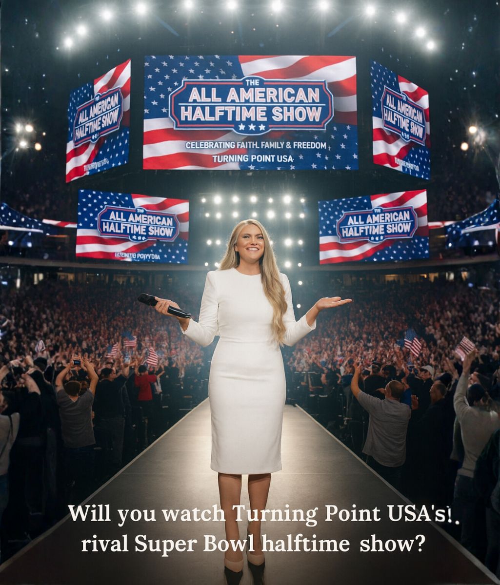 HISTORIC ANNOUNCEMENT: Turning Point USA Unveils “The All-American Halftime Show” — A Patriotic Answer to Super Bowl 60. In a move that’s capturing hearts and headlines across the nation, Turning Point USA — founded by the late Charlie Kirk and now led by his wife Erika Kirk — has revealed plans for a groundbreaking new event: The All-American Halftime Show. Scheduled to air opposite the Super Bowl 60 halftime spectacle, this bold alternative promises a celebration rooted not in celebrity or spectacle, but in faith, family, and freedom. “This isn’t about rivalry,” Erika said. “It’s about revival — reminding Americans of the values that make us who we are.” The announcement has already sparked a wave of excitement nationwide, with millions pledging to tune in. Two stages. Two stories. One celebrates fame — the other, America itself.