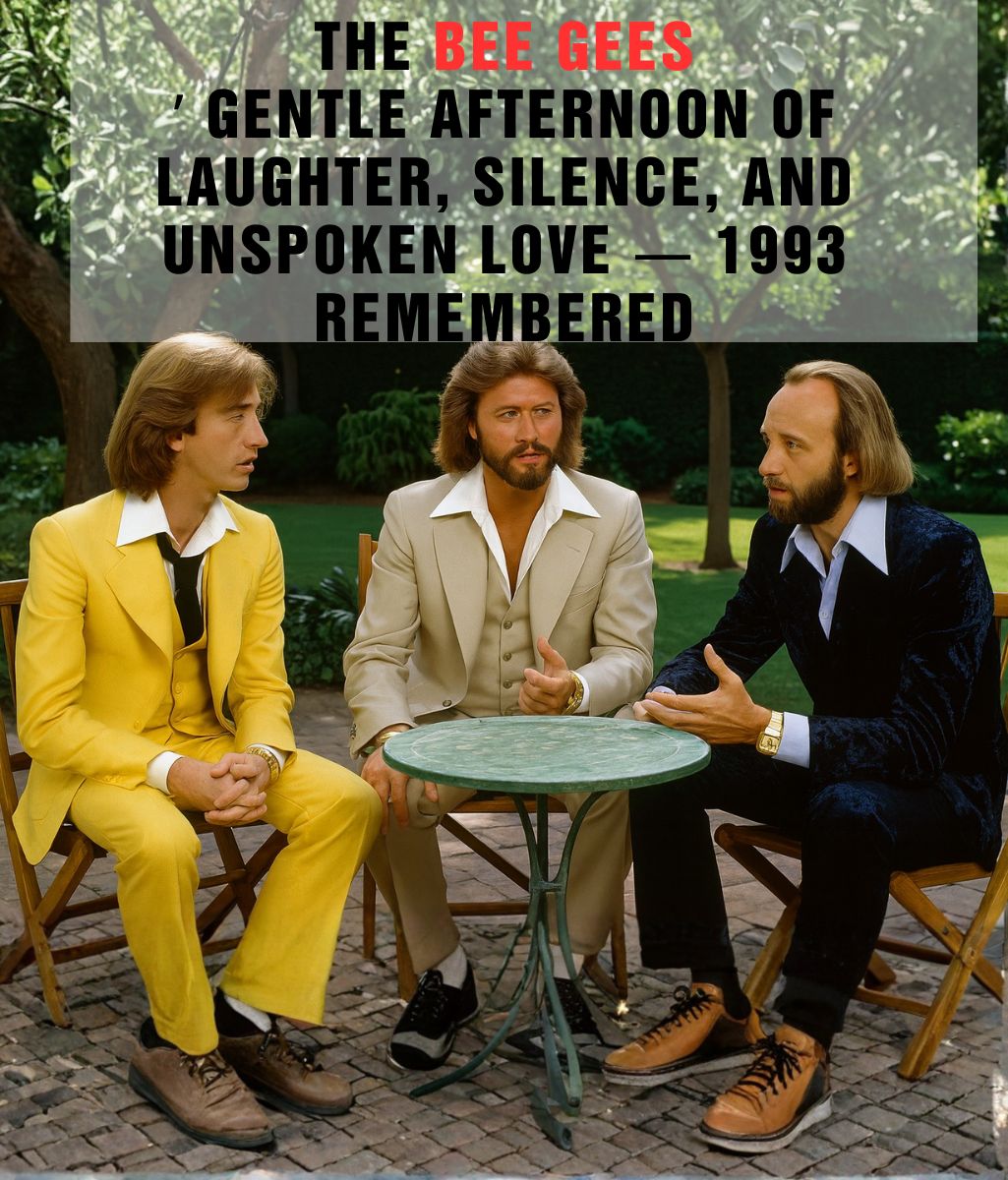 In the soft glow of a sunlit afternoon in 1993, Barry, Robin, and Maurice Gibb sat together in Barry’s garden — three brothers surrounded not by crowds or cameras, but by the quiet beauty of home. What unfolded that day wasn’t a typical celebrity interview; it was a confession wrapped in sunlight — an open conversation between men who had lived, loved, lost, and kept singing through it all.