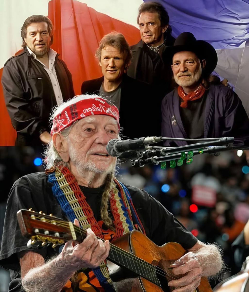 “IT WASN’T JUST A BAND — IT WAS FOUR SOULS FOREVER BOUND BY MUSIC.” Sitting quietly on his weathered porch in Luck, Texas, Willie Nelson lets the afternoon sun trace the lines of his face as memories drift back like dust along a country road. The Highwaymen — Johnny Cash, Waylon Jennings, Kris Kristofferson, and himself — were never simply collaborators; they were a brotherhood forged through the grit of life, the miles of endless highways, and songs born from raw honesty. Each man carried his own story, his own weight: Johnny’s gravitas and quiet authority, Waylon’s fearless defiance and unyielding spirit, Kris’s poetic insight and reflective soul, and Willie’s tender, unflinching truth. Together, they built more than a supergroup — they created a living testament to what happens when talent, friendship, and shared vision converge. Their harmony was never just about sound; it was about trust, loyalty, and a rare kind of musical empathy that only comes from walking through life side by side.