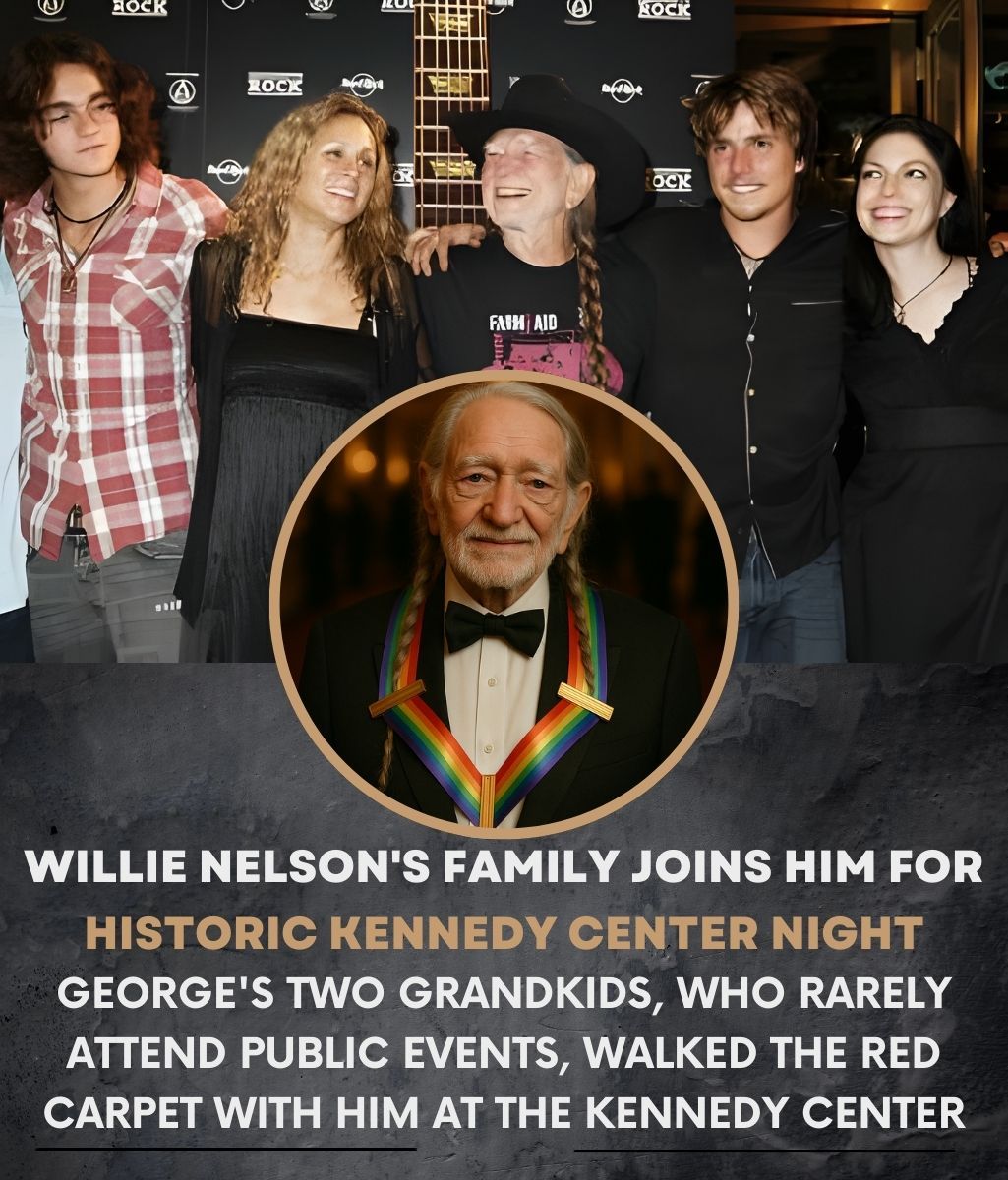 Kennedy Center honoree Willie Nelson turned the prestigious ceremony into a deeply personal family moment. On December 7th, the country legend was surrounded by those who matter most — his family standing proudly beside him as he was celebrated for a lifetime of music and meaning. In a rare and touching appearance, Willie’s grandchildren joined him for the evening, reminding everyone that behind the icon is a grandfather whose greatest legacy lives far beyond the stage.