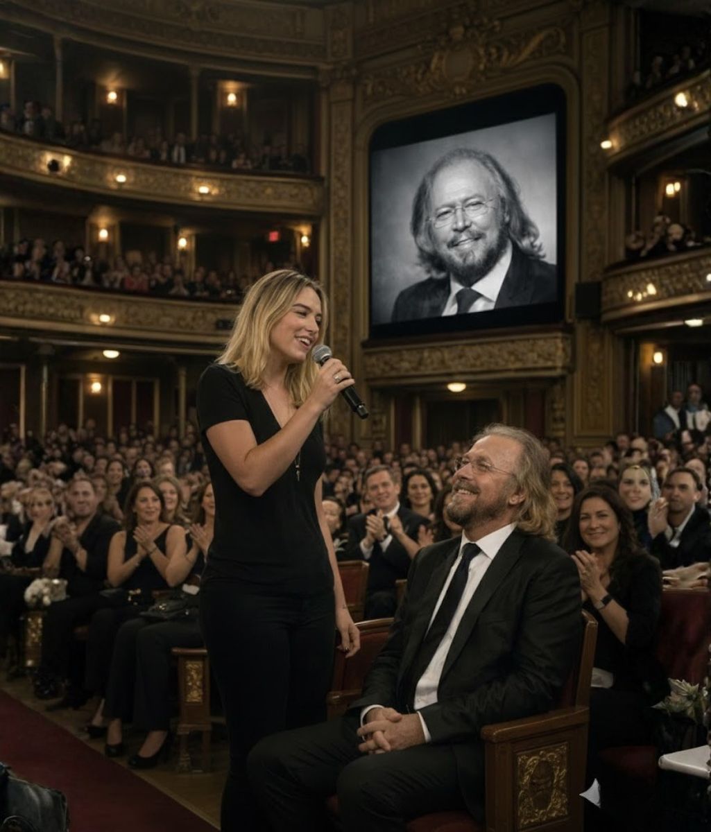 Last night, Barry Gibb didn’t stand like a Bee Gee crowned by falsettos and stadium-sized choruses behind him. At his age, he stood quietly. Grounded. Like a father. When Alexandra Gibb stepped forward — not as a name from a famous bloodline, not as a symbol of pop history — but as his daughter, entering a shared creative space, the air softened. No spectacle. No legacy branding. No grand announcement. Just a familiar melody unfolding slowly, carried by a voice shaped in a home where songs weren’t hits yet — they were bedtime sounds, unfinished verses, and long nights waiting for Dad to return from the road. As the notes lingered, Barry lowered his gaze, eyes closing for a moment. Not performing. Just receiving. In that instant, there were no charts, no brother harmonies echoing from the past, no world tours to remember. Only a man hearing his life reflected back — through the voice of the daughter who grew up inside the music, who knows these songs not as history… …but as family.