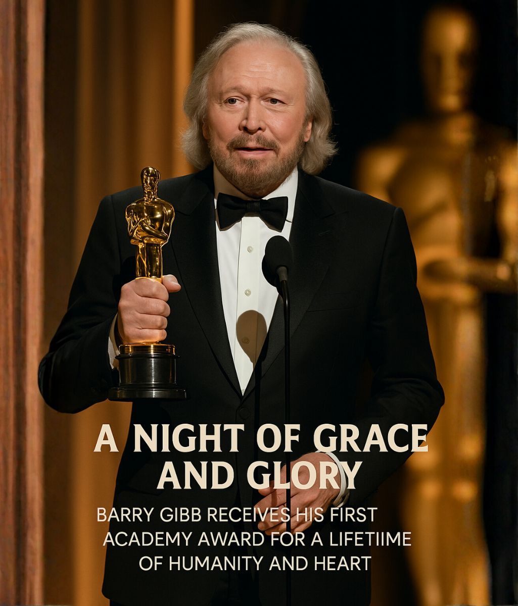 Last night in Hollywood, under the soft glow of the theater lights and before an audience filled with artists, filmmakers, and musical royalty, Barry Gibb received one of the most meaningful honors of his extraordinary life — an Academy Award presented not for chart-topping hits or global acclaim, but for something even deeper: decades of humanitarian work, quiet acts of kindness, and a lifetime spent lifting others behind the scenes.