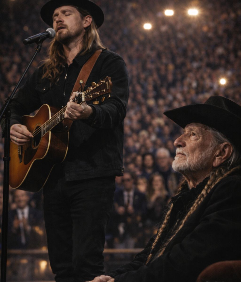 Willie’s eyes caught the glow. A father receiving the blessing he once gave. The exchange didn’t need explanation. It lived in the space between them—in the way the melody held, in the way the room stayed quiet, in the way time loosened its grip just enough to let something pass.