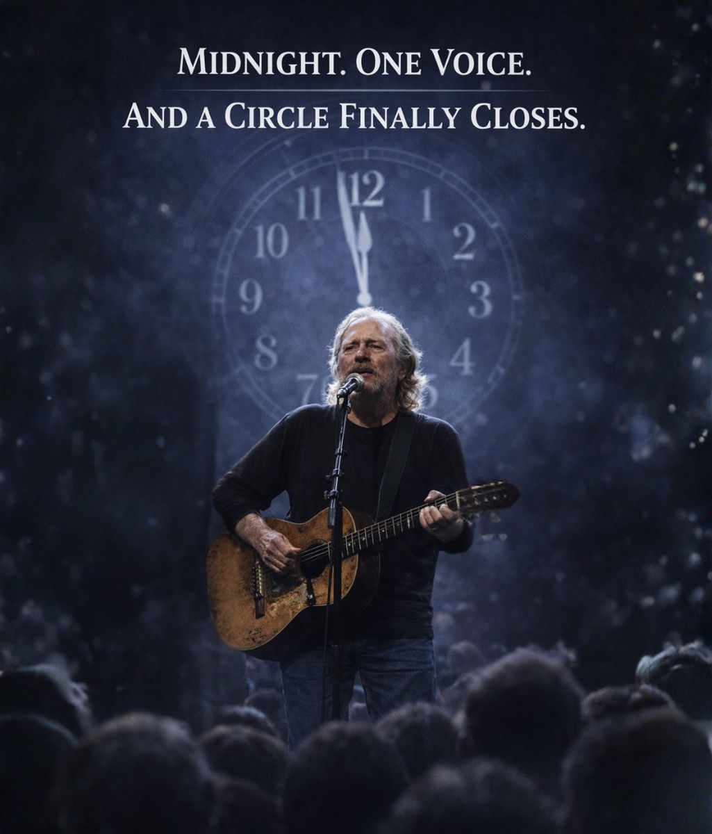 As the clock strikes twelve on New Year’s Eve 2026, the world expects noise — fireworks, countdowns, spectacle. Instead, it is met with stillness. From the center of the stage, Barry Gibb steps forward alone, not to command attention, but to offer something far more powerful: presence.