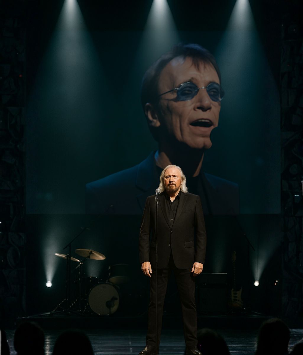 Witnesses say Barry Gibb — seated quietly in the center of the room — didn’t blink. His shoulders stiffened. His breath caught. His expression shifted through a thousand emotions at once: awe, sorrow, pride, and the quiet, piercing ache only a surviving brother knows.