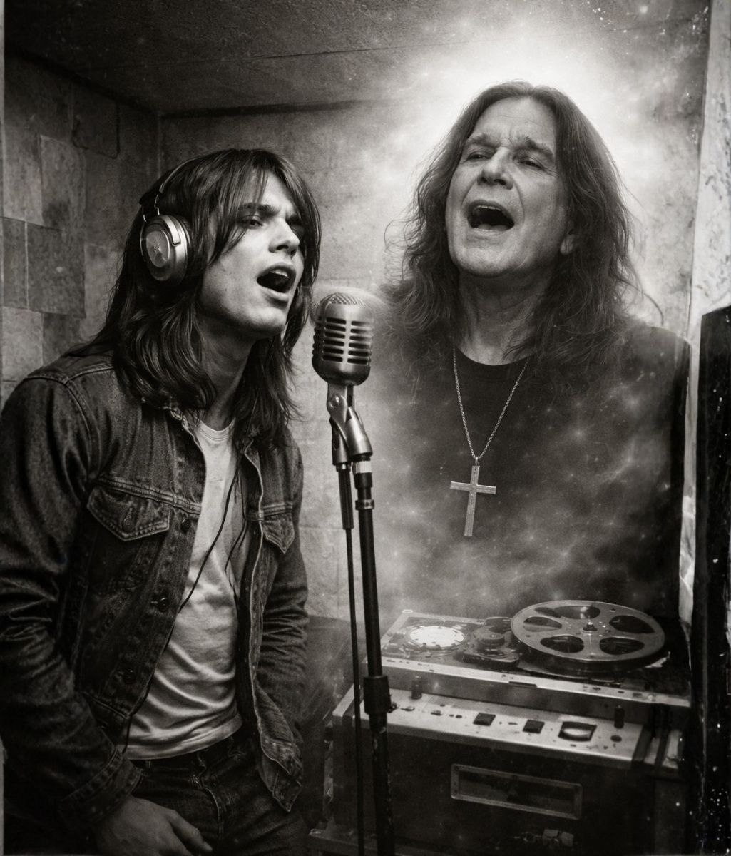 It is older. Heavier. Marked by years the young singer could never imagine. A voice shaped by survival, by excess, by loss, by endurance. It is unmistakably Ozzy — decades later — rising like an echo from somewhere beyond chronology. Not louder. Not cleaner. But infinitely deeper. Where the younger voice trembles, the older one knows.