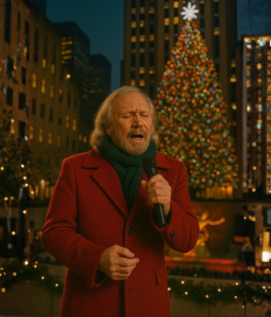 Above him, the towering Christmas tree shimmered in full splendor, its lights dancing softly as Barry’s melodies drifted upward and outward, carrying decades of love, memory, and harmony. It didn’t feel like a performance meant to impress. It felt like a gift — one given gently, without urgency, the way the best moments always arrive.