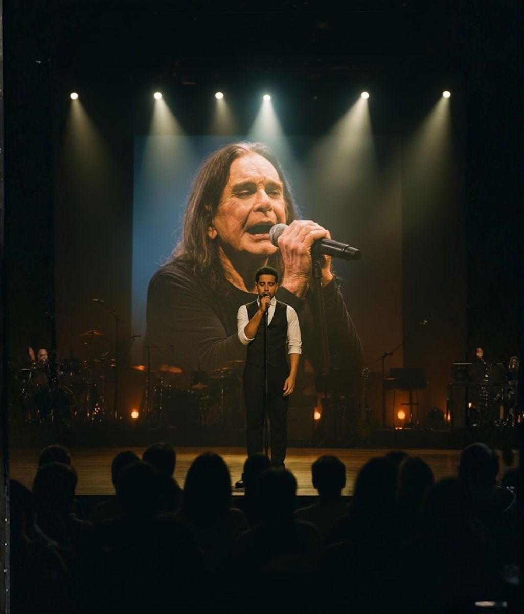 From the speakers rose Ozzy’s voice—raw, unpolished, unmistakable. Not a trick. Not an effect. The original vocal Ozzy had recorded years earlier, woven gently into the performance. Gravelly. Fragile. Alive with feeling.