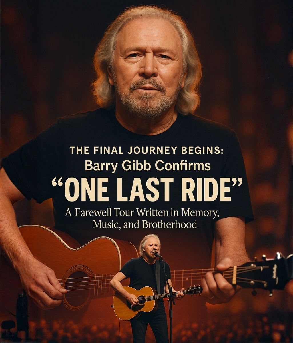 The announcement fans never thought they’d see has finally arrived — “ONE LAST RIDE” is real, and with Barry Gibb leading it, this tour is nothing short of a goodbye written in music. Because this time, it isn’t just about concerts. It’s about closure. It’s about legacy. It’s about three brothers whose voices still live inside Barry’s every note. “This is for them,” Barry whispered, carrying decades of love, loss, and memory in a single sentence. Each night of the tour will honor Robin, Maurice, and Andy — the harmonies that shaped generations and still drift through every stage Barry touches. As the lights rise on this final journey, fans around the world will feel it in their bones: This isn’t just the end of a tour. It’s the last heartbeat of the Bee Gees’ story — a farewell that will echo long after the music fades.