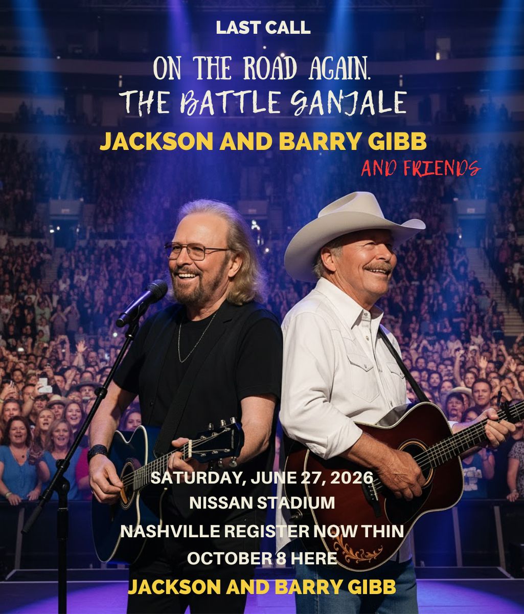 On June 27, 2026, beneath the warm Tennessee sky, the world will witness a moment that will live forever in music history — when Barry Gibb, the legendary voice of the Bee Gees, steps into the spotlight at Nissan Stadium in Nashville to join Alan Jackson for what is being called “The Final Ride.”