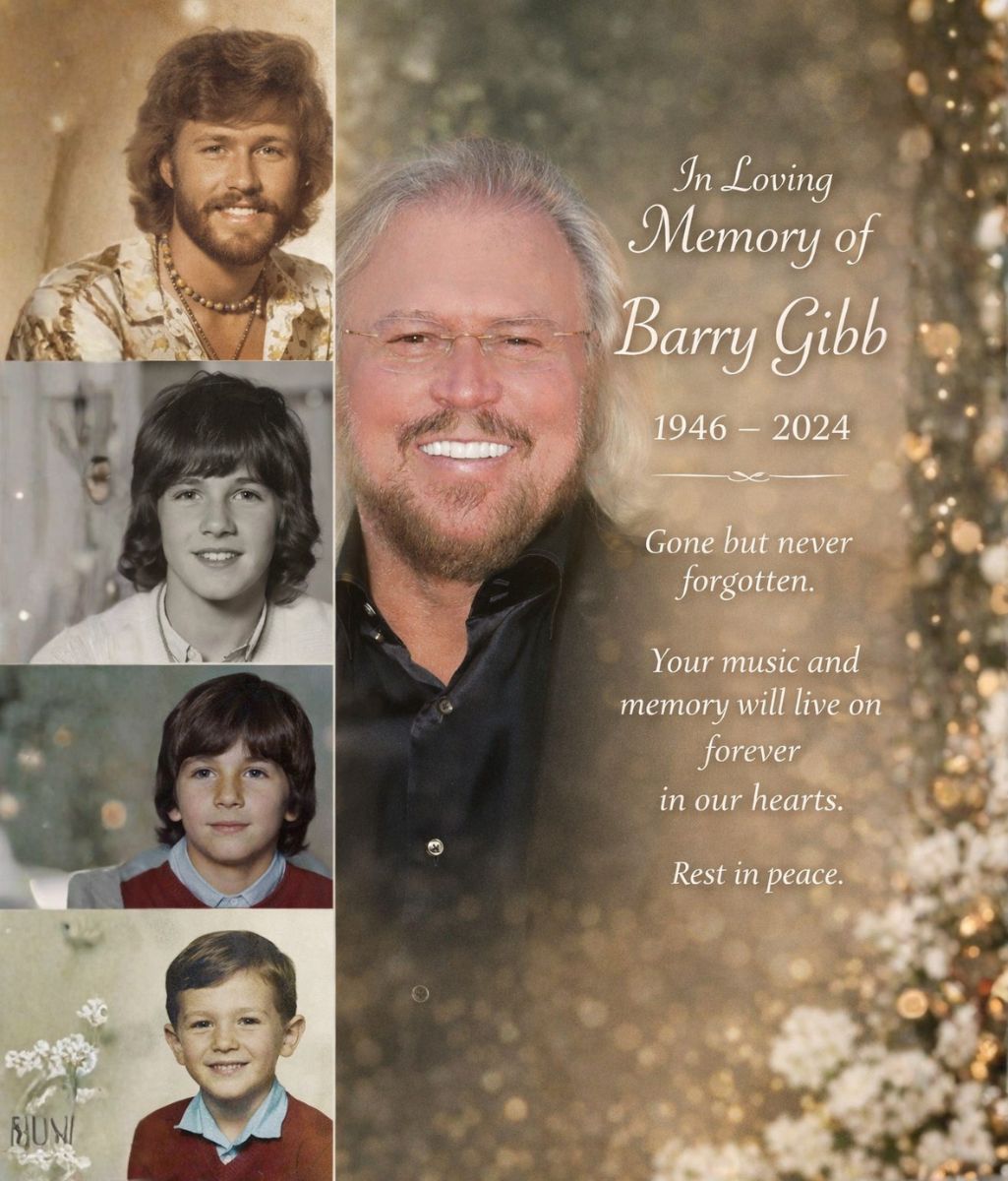 Every image tells the same truth. From a barefoot boy chasing melodies across distant stages to the man who stood beneath arena lights with his brothers, Barry Gibb never stopped singing for what mattered.