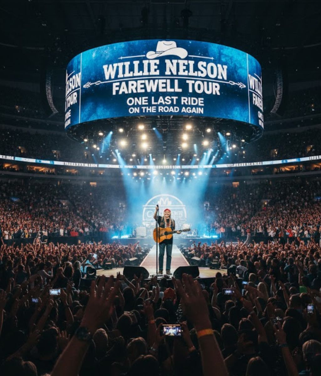 THE LIGHTS DIDN’T GO OUT — THEY SLOWED. And in that quiet pause, everyone knew this night mattered. The stage dimmed like the last glow of a long summer evening, not an ending but a letting go. At 91, Willie Nelson stood center stage, his battered guitar resting against him the way it had for a lifetime. No fireworks. No hurry. Just a soft smile and a room full of people holding the same breath. “One last ride,” he murmured — not as a headline, but as a shared understanding. The first chords drifted out, worn and true. Songs that had ridden shotgun through divorces and highways, late nights and second chances. Willie didn’t dominate the moment. He settled into it — calm, steady, fully present. Between songs, he spoke like an old friend. About the road. About those who didn’t make it this far. About mornings that arrived too fast and nights that never really ended. And when the final note finally slipped into silence, he tipped his hat. No speech. No spectacle. Just gratitude. And somehow, that quiet goodbye echoed louder than any applause.