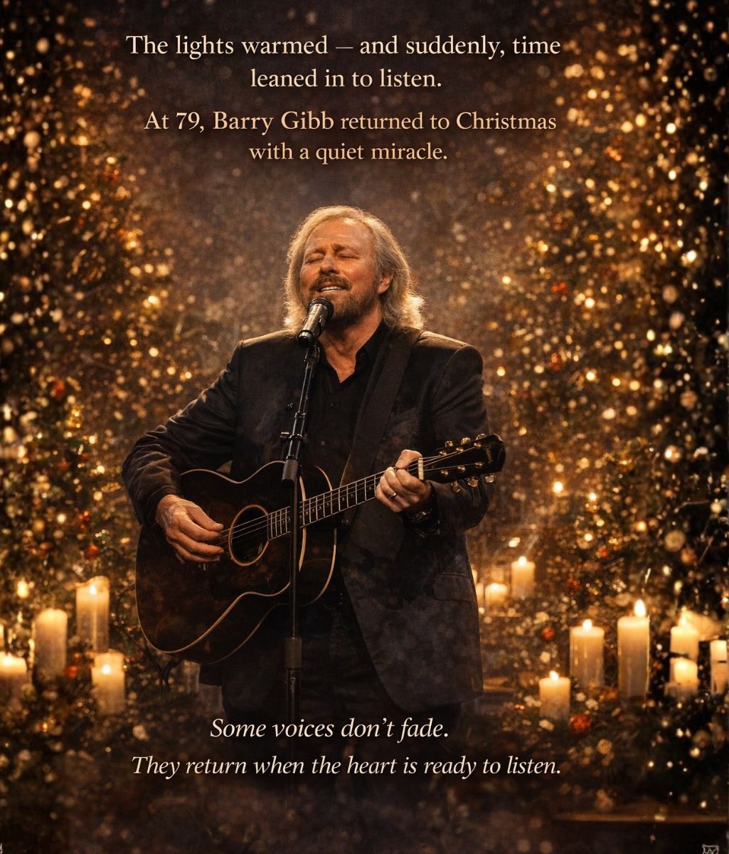 At 78, Barry Gibb returned to Christmas with a moment few dared to imagine. There was no announcement designed to raise expectation, no spectacle reaching for reaction. One breath was enough. One soaring falsetto — unmistakable, luminous — and the room changed.