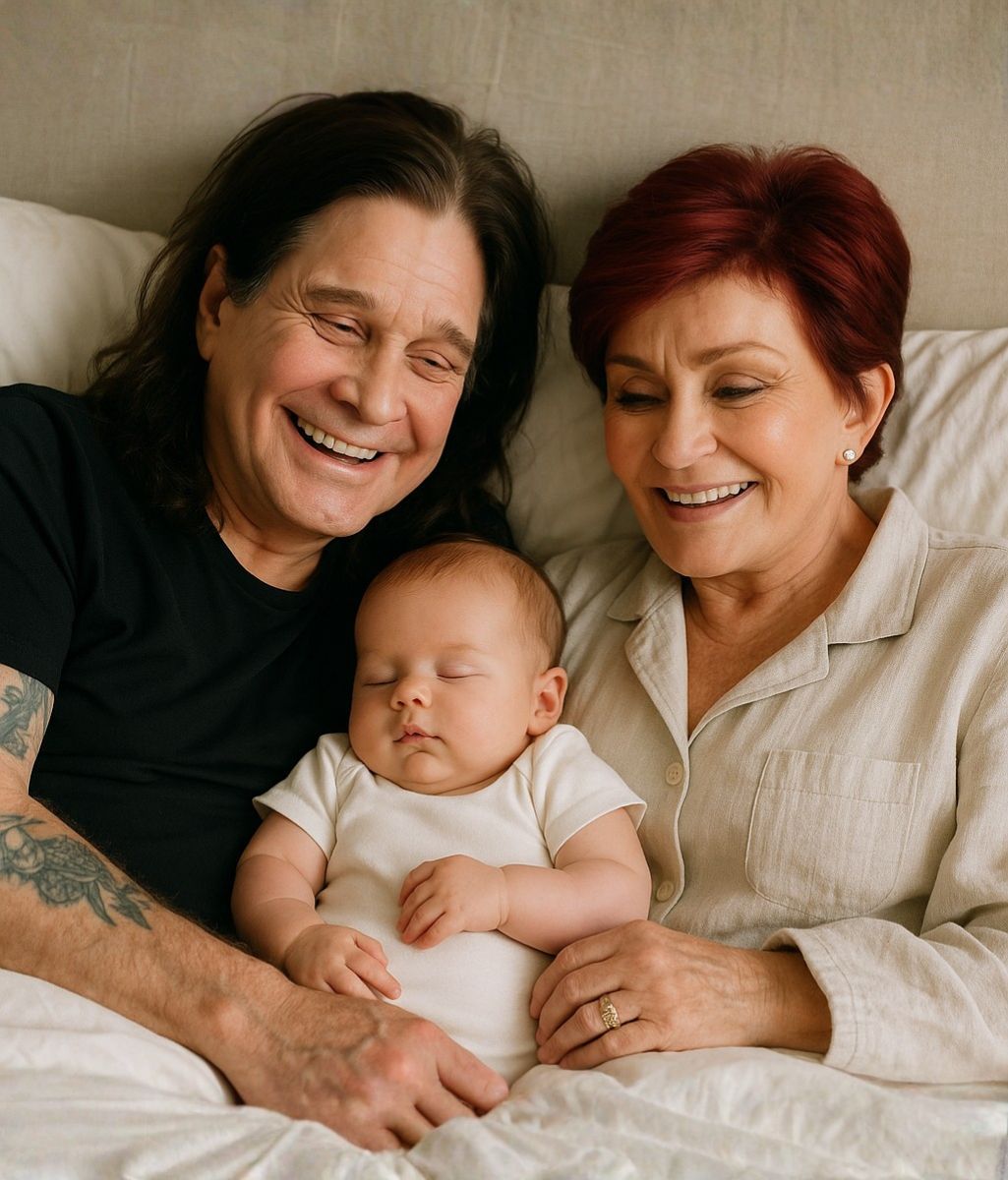 THE PRINCE OF DARKNESS… WITH A BABY? No screaming crowds. No pyrotechnics. No chaos. Just Ozzy Osbourne — the wildest man in metal — lying in bed, calm and smiling, with Sharon beside him and a baby nestled against his chest. It’s the kind of moment no one expects from the legend who once ruled the stage with fire and fury… yet it reveals the truth fans rarely get to see. Sharon, steady and warm, watches him with the quiet pride of someone who knows every version of Ozzy — the storm and the softness. And Ozzy? He looks peaceful. Tender. Human. It’s a snapshot the world doesn’t forget: the Prince of Darkness, disarmed by love, reminding everyone that even the loudest legends have a gentle heartbeat reserved only for family.
