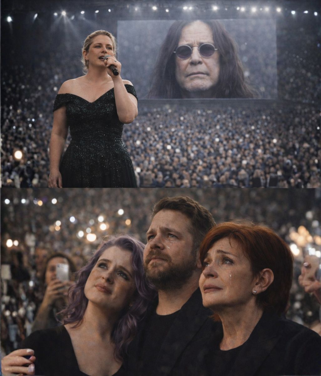 The room fell silent — and then he was there. On New Year’s Day, a day usually reserved for celebration and forward-looking hope, something profoundly different unfolded. Jessica Osbourne stepped onto the stage carrying not spectacle, but memory, grief, and a quiet, steady courage that needed no announcement. What followed was not merely the unveiling of a song. It was the opening of a space where time loosened its grip, where the past breathed again, and where an absence became unexpectedly present.