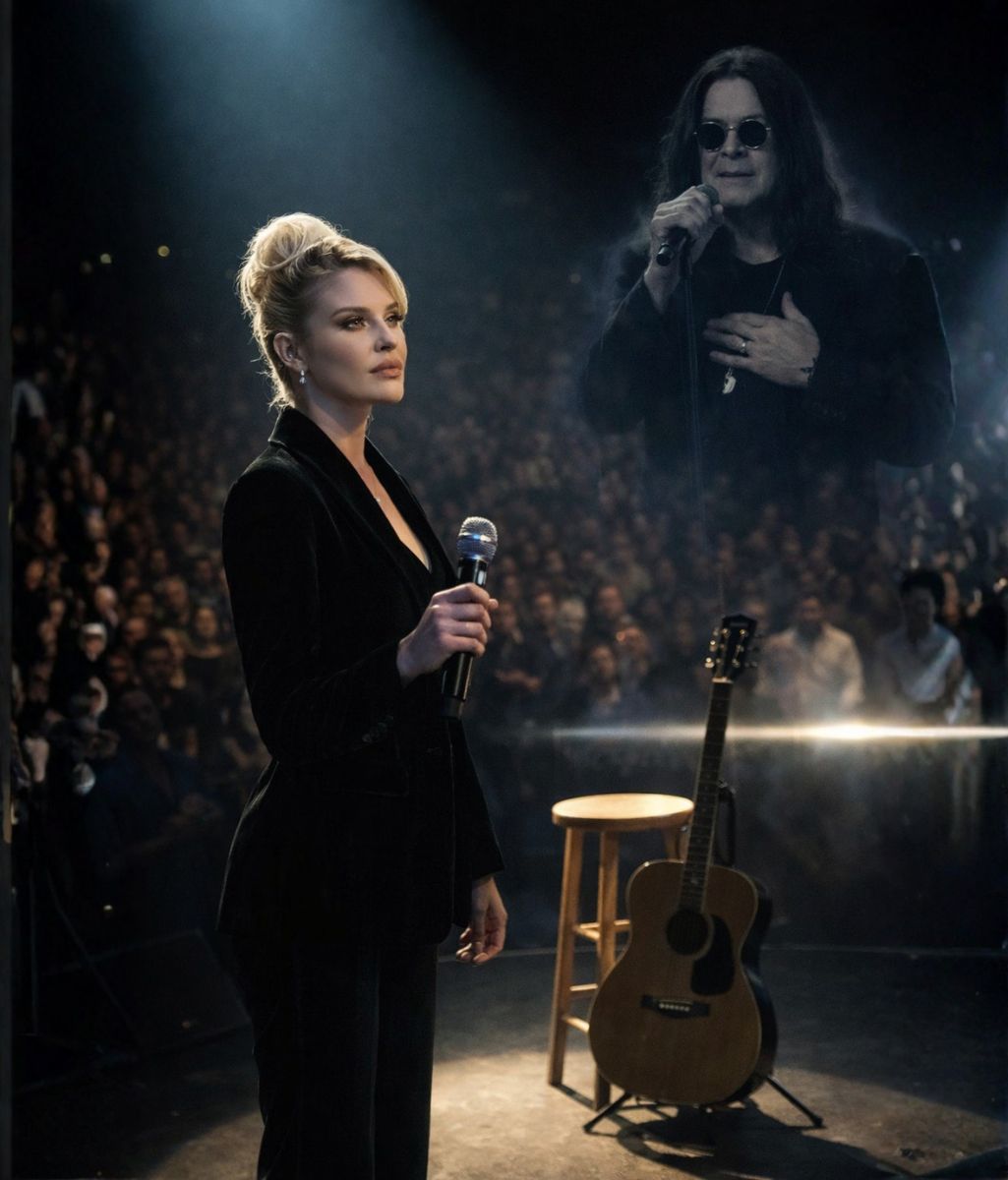 Kelly Osbourne stood alone beneath the lights. Beside her was an unmistakable absence—an open space where Ozzy Osbourne had once stood, commanding attention with a presence that felt almost mythic. For decades, he had seemed larger than life, yet in this moment, it was the quiet space beside Kelly that felt immense.