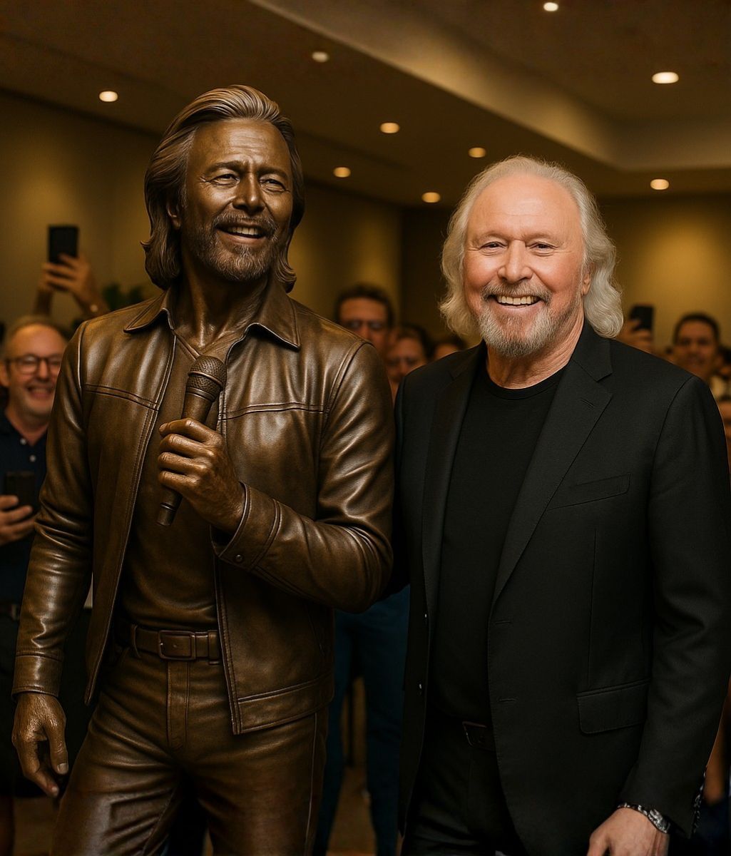 Inside the intimate unveiling hall, emotion rippled through the crowd. Phones lifted. Fans wept. Old friends exchanged quiet nods. And at the front of the room stood Barry Gibb — the last living Bee Gee — gazing at the bronze figures of the brothers who shaped his life, his voice, and his soul.