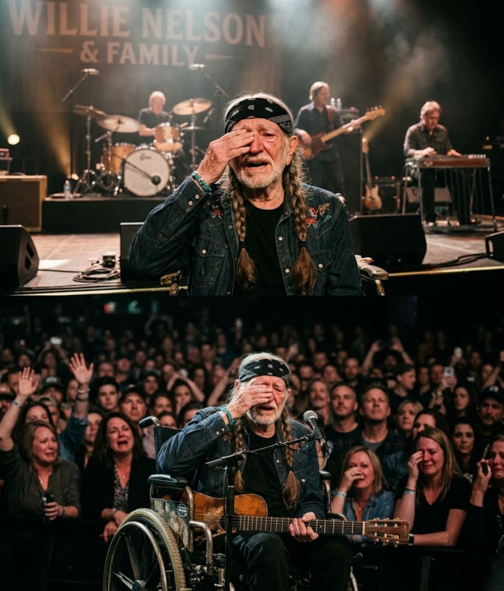As Willie stood there, taking in the sound, the emotion became impossible to hide. His eyes filled, and for a brief moment, the legendary performer simply stood still, letting the moment speak for itself.