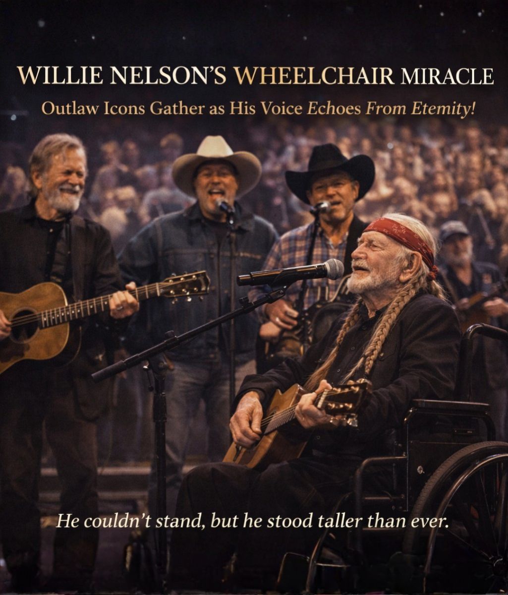 Seated under soft stage light, Willie Nelson didn’t arrive to prove anything. He arrived to be present. The wheelchair did not diminish the moment; it clarified it. Before the first chord settled, goosebumps moved through the room — not from spectacle, but from recognition.