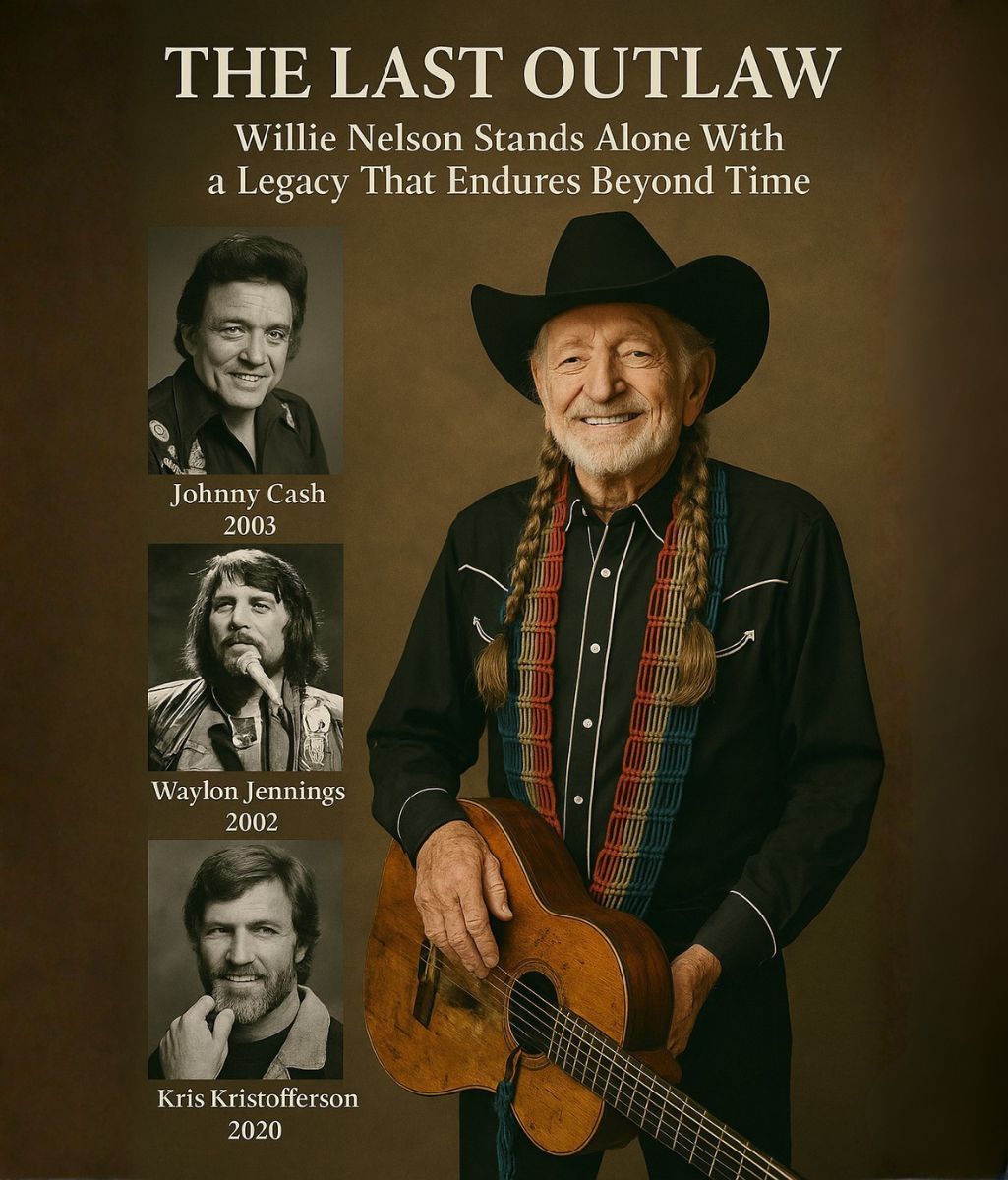You don’t need an explanation — the image lands before your thoughts can catch up, heavy and undeniable. Four men once stood shoulder to shoulder, voices braided into the spine of American music, each carrying a piece of the country’s soul. Johnny Cash. Waylon Jennings. Kris Kristofferson. Names that don’t fade so much as echo, chapters that closed quietly but never gently.